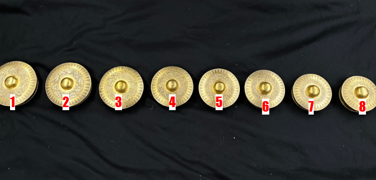 Bottom line being gong 1 and top line being gong 8
