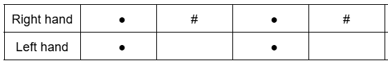 Because boxes aligned vertically occur at the same moment in time, you will never see a ● in a column where either the right or left hand is already playing a numbered action.